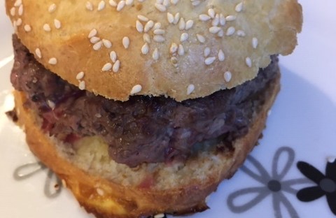 Tranchez le pain dans l’épaisseur. Disposez l’oignon caramélisé puis la viande. Refermez et dégustez ! Bon appétit !