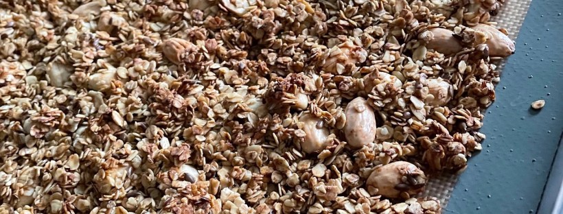 Adepte du porridge pour mes petits déjeuners, j’ai eu envie de changement ! J’ai eu envie de croquant ! J’ai donc décidé de tester une recette de granola, revisitée à ma sauce, bien sur ! Je vous la présente…