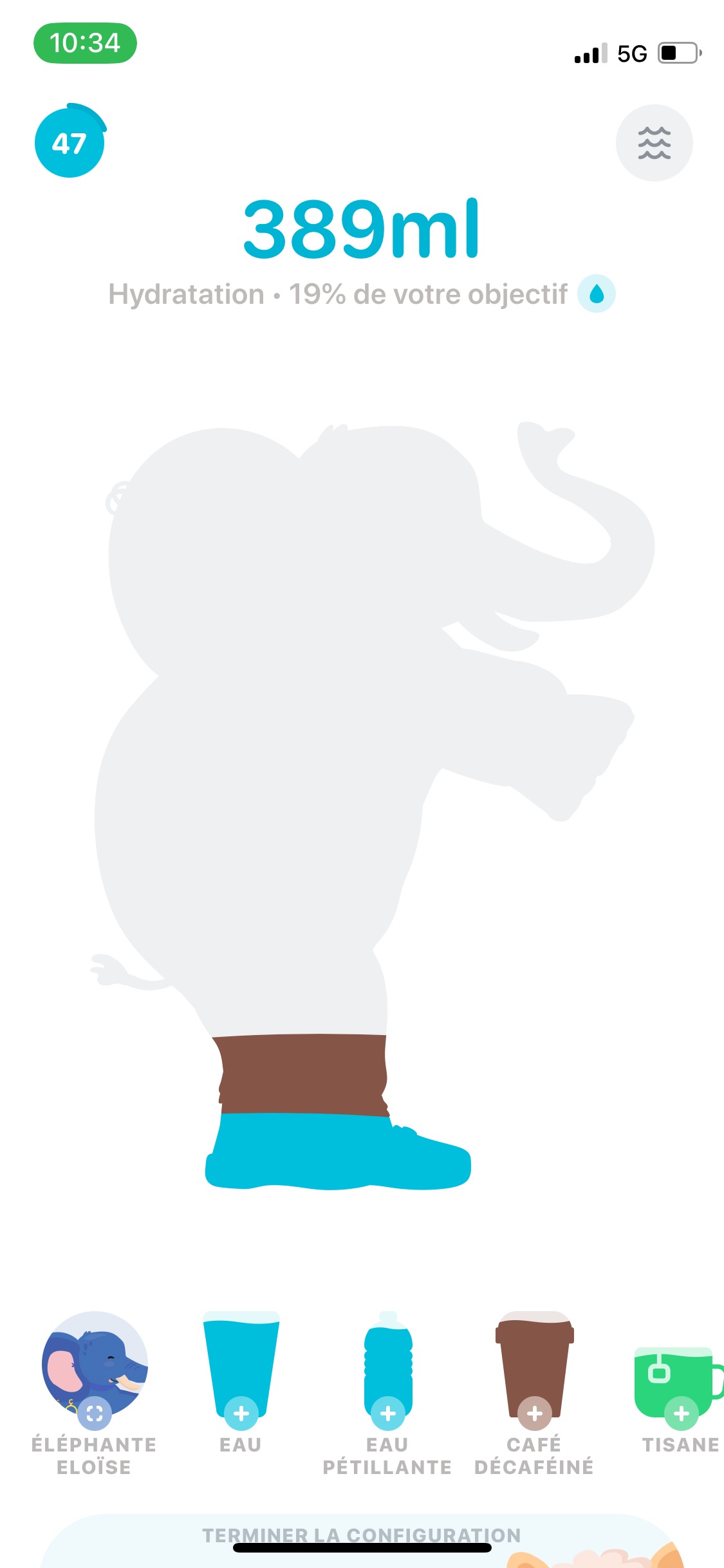L’application vous propose un objectif quotidien d’hydratation et vous récompense d’un badge « personnage » chaque fois que l’objectif est atteint.